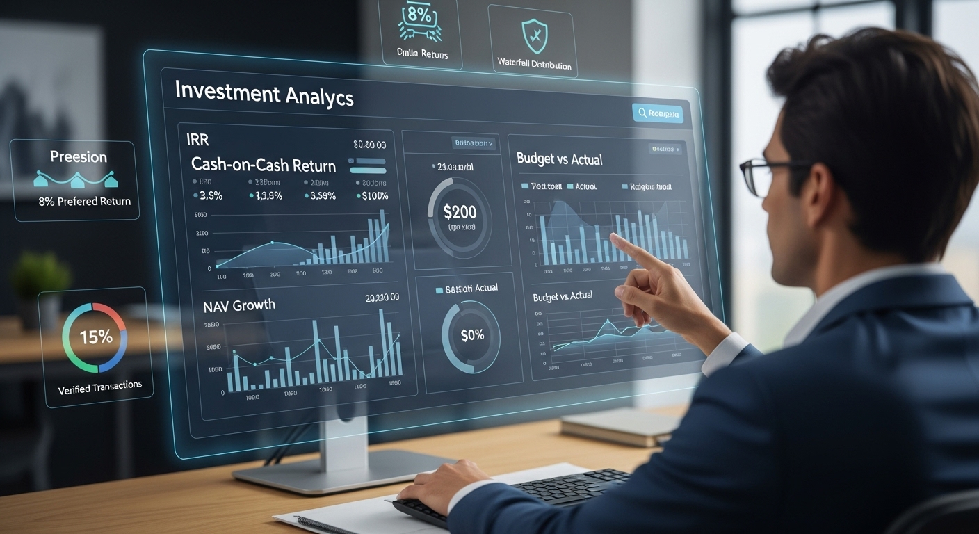 Our investor dashboard moves beyond static quarterly reports, offering dynamic analytical tools for real estate investment returns. Key features include: