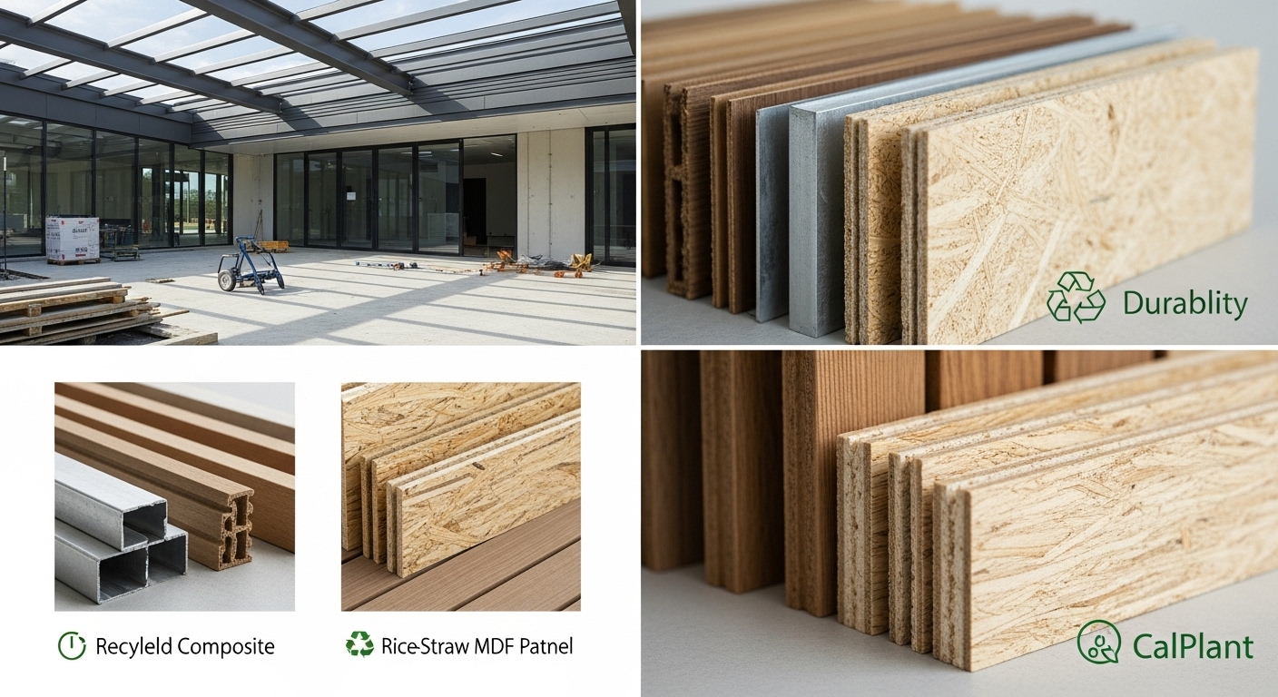 Materials are the literal foundation of everything we build. We source recycled and composite materials from trusted partners like Trex and CalPlant, turning innovation into everyday building solutions. Composite decking and siding are durable, low maintenance, and built to perform. Rice-straw MDF transforms agricultural waste into high-quality panels and boards, reducing embodied carbon and supporting circular design goals. These materials extend the life of each development while also improving our clean energy infrastructure
